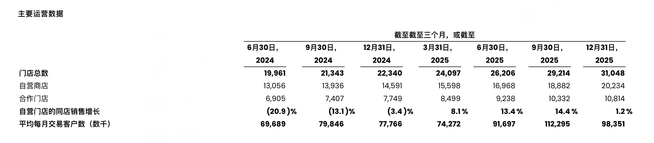3. 同店销售转正:自营门店同店销售增长率全年7.5%,从2024年的-16.7%扭负为正;第四季度增长1.2%,受外卖补贴变化影响。
