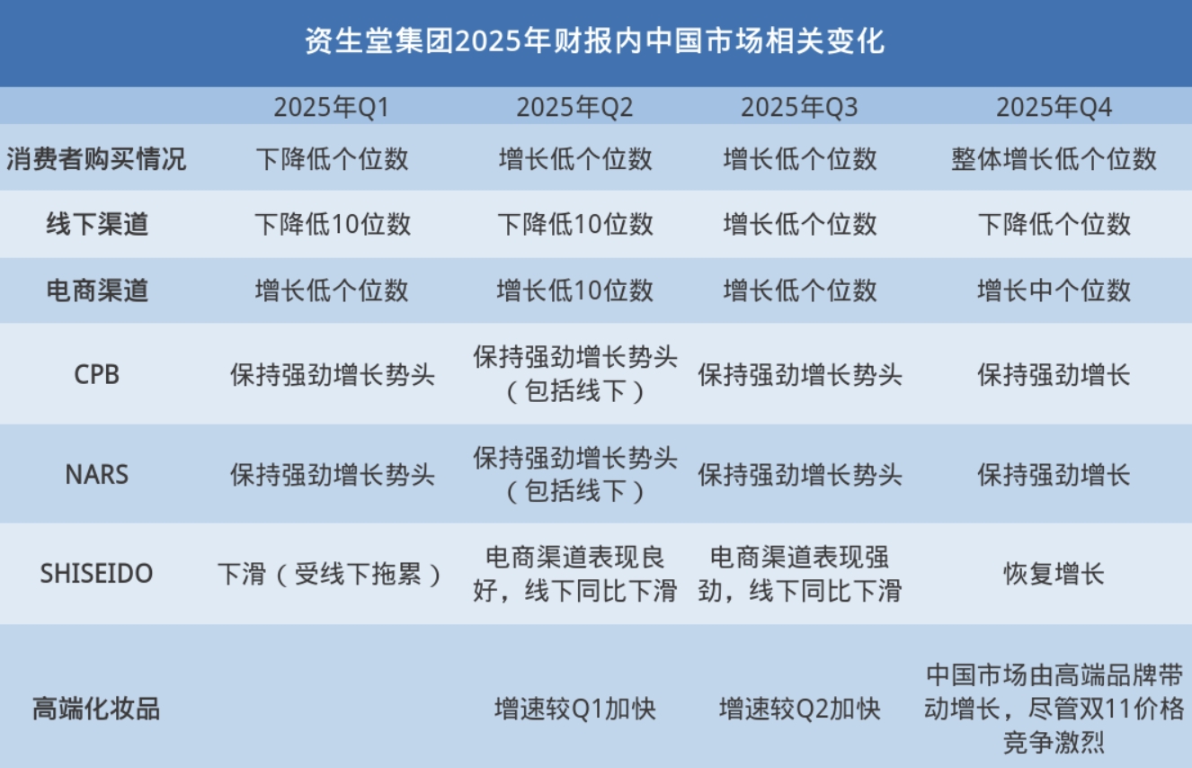 2. 事件应对措施和风险提示包括线下渠道拖累(第一季度、第二季度下滑两位数,第四季度低个位数下滑),但电商渠道全年增长;资生堂中国业务核心营业利润虽跌75亿日元,仍达645.25亿日元,提示需规避线下风险,优先线上与高端合作;政策解读无直接涉及,但合作扶持如资生堂与美丽田园战略合作提供新路径。