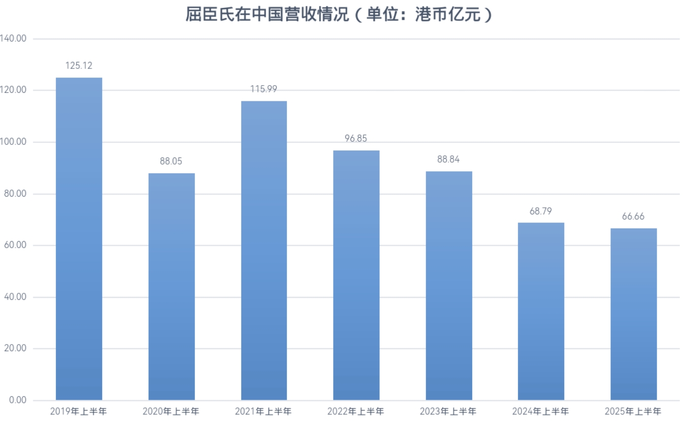1. 屈臣氏在中国市场持续收缩,2025年上半年收益66.66亿港元同比下降3%,关闭145家门店至总数3630家,已连续5年下滑。