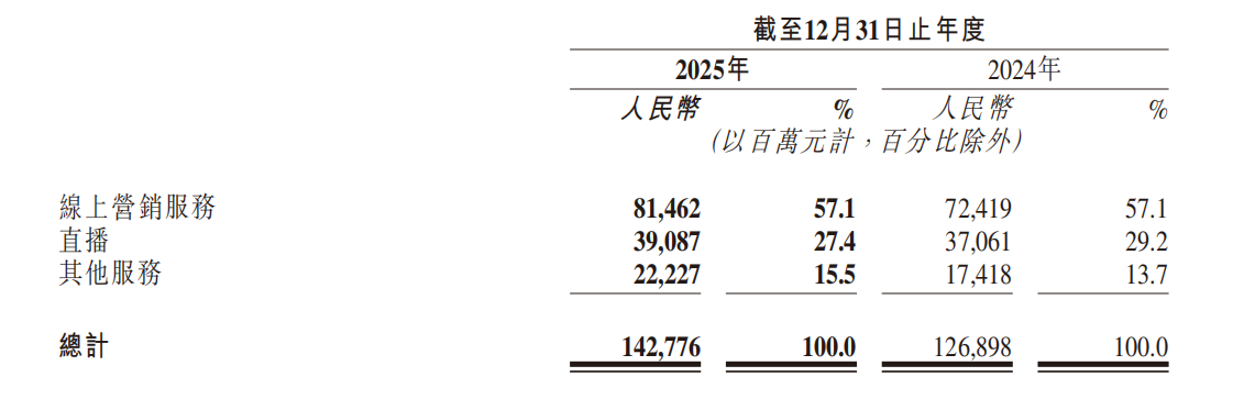 3.主营业务增长稳健:线上营销服务营收814.62亿元,增长12.5%;直播业务营收390.87亿元,增长5.5%;其他服务(含电商)营收222.27亿元,增长27.6%,成为最快增长板块。