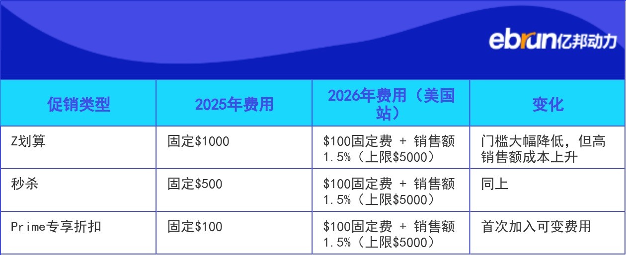 1. 政策变更:2026年收费从固定费用改为预付加抽成模式(如美国站100美元固定加1.5%销售额),门槛降低但高销售额成本可能大增。
