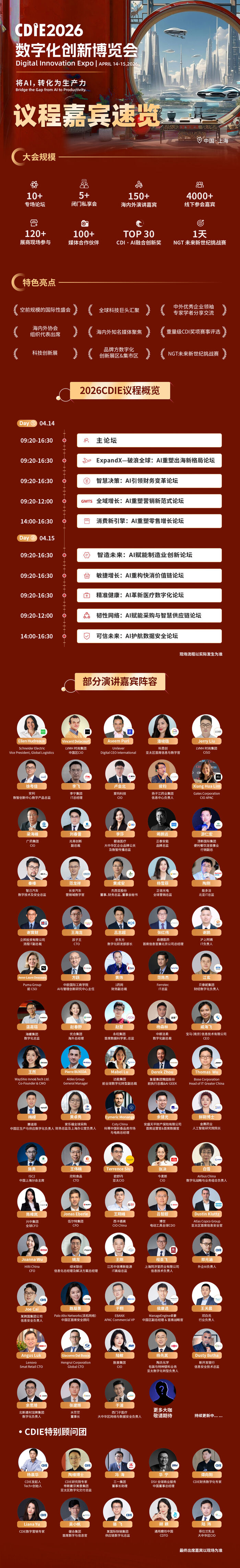 CDIE2026数字化创新博览会聚焦AI转化为生产力,提供重点信息和实操干货。