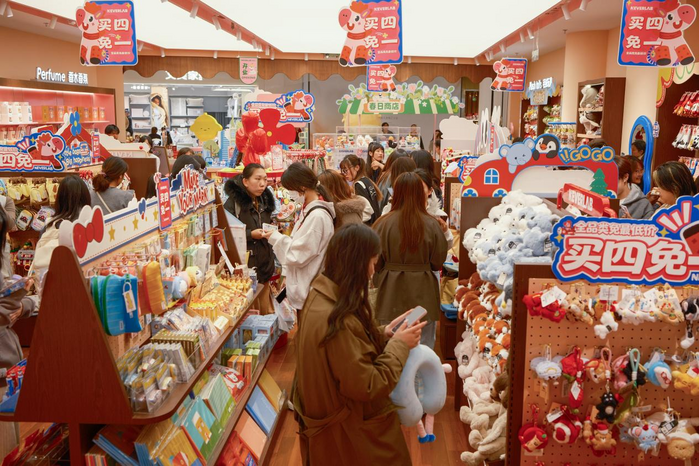 2.自研IP如趴趴家族强化情感连接,全球IP联名区满足多样化审美,设计需注重视觉、触觉、嗅觉融合。