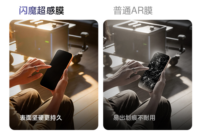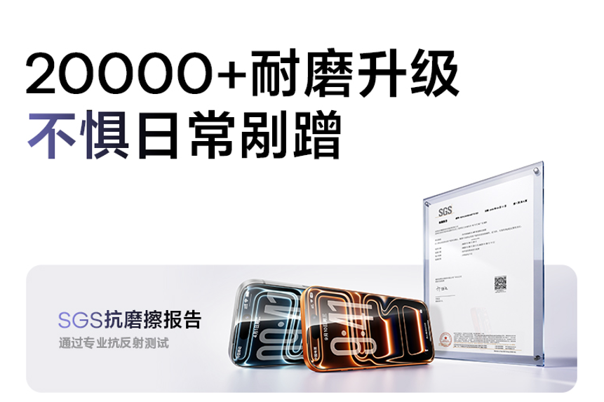3. 触觉耐用上,SGS认证耐磨2万次以上,Silktech三层防护技术解决粘指纹和发涩问题,长期使用依旧流畅。用户无需在抗反光、清晰度或手感间妥协,直接获得超越原屏的体验。