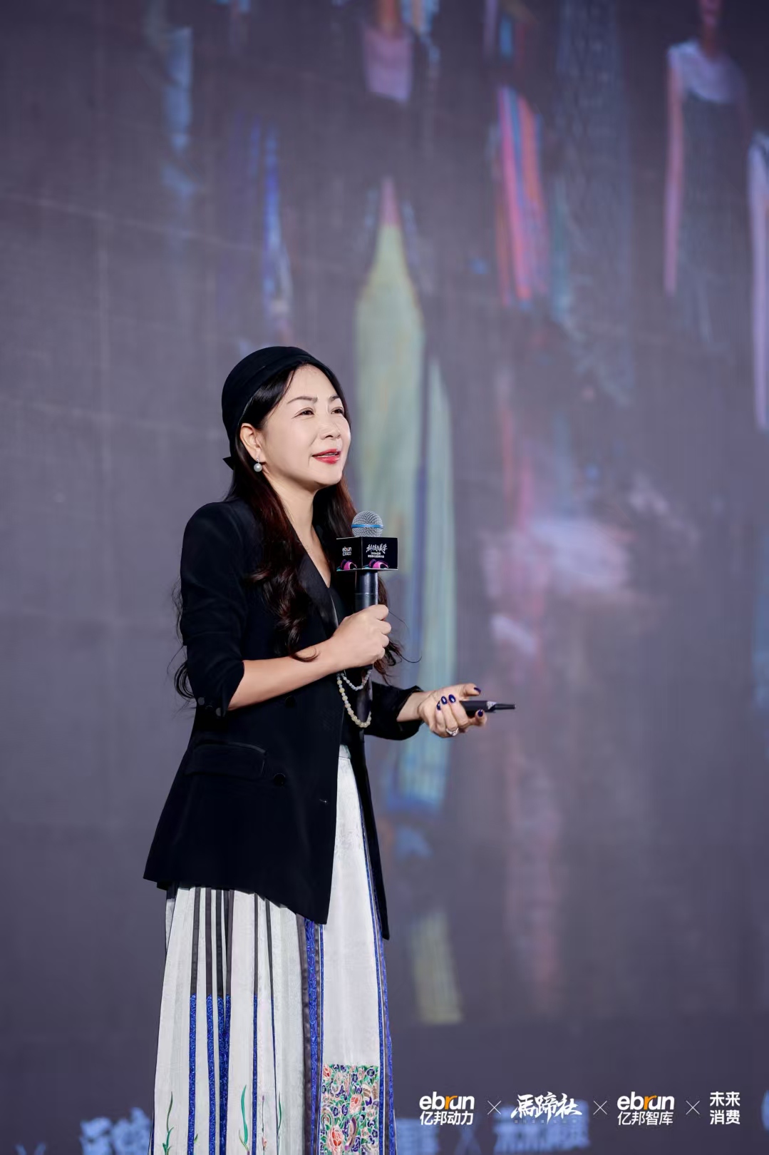 今天大家看到我身上穿的这一条,就是非常经典的传统马面裙。可能还有很多人不太了解,昨天江总提到对马面裙不是很熟悉,我今天就特意穿来给大家看一看。在我看来,品牌是一个有生命的有机体,其核心价值应该是无法被机器复制的。它首先应当具备三个维度。