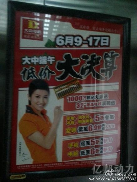 根据大中电器的广告海报发现,大中电器6月中旬将会大折扣让利,空调低至6.9折,电脑低至6折,而手机最低会以半价呈现,此外还有1000万积分派送。