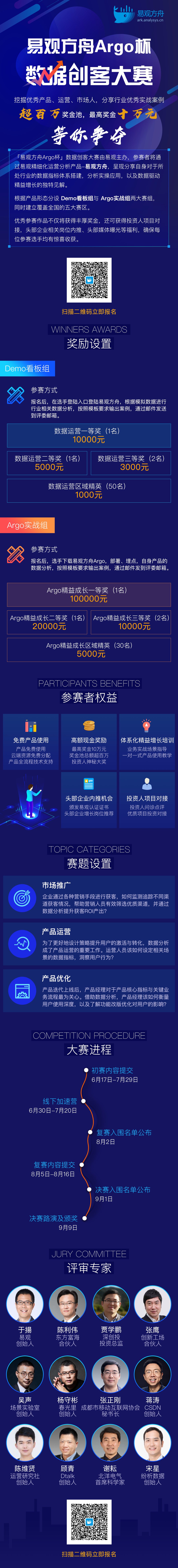 大赛依托易观精细化运营分析产品——易观方舟,根据产品运营从业者及创新团队等不同参赛选手特点,分设Demo看板组和Argo实战组两大赛组,同时覆盖全国华北、华东、华中、华西、华南五大赛区。