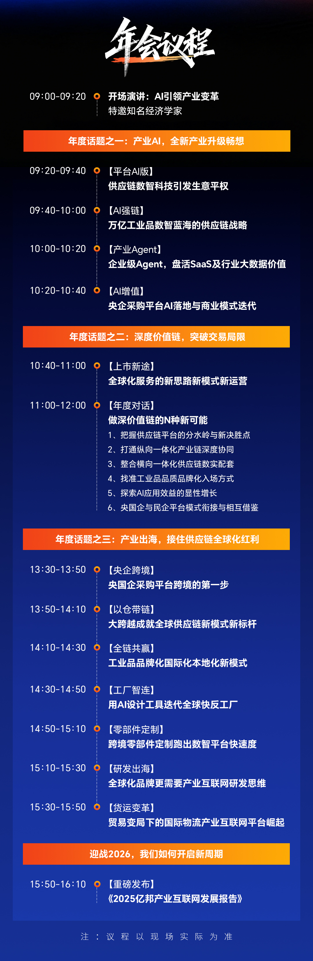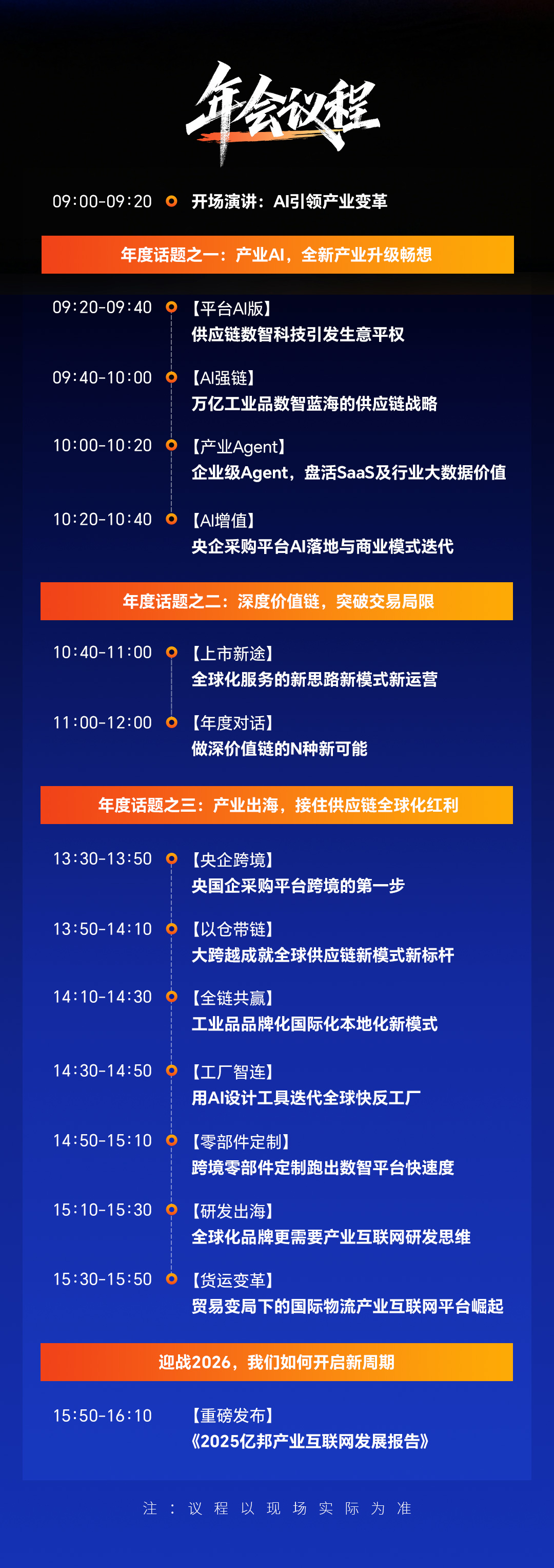 产业互联网基本面未变,长坡厚雪,但周期轮换。原生动力来自数智技术变革、全球化变革带来的产供链变革。亿邦动力作为产业互联网的旗舰媒体和智库机构,从产业互联网元年起,持续举办产业互联网年度旗帜会议。主题历经2019年“燃”、2020年“加速度”、2021年“看见数字化价值”、2022年“走进产业深处”、2023年“谁在重构产业链”到2024年“供应链变革与AI落地”。亿邦产业互联网年会,与业界相伴经历产业互联网初创期。