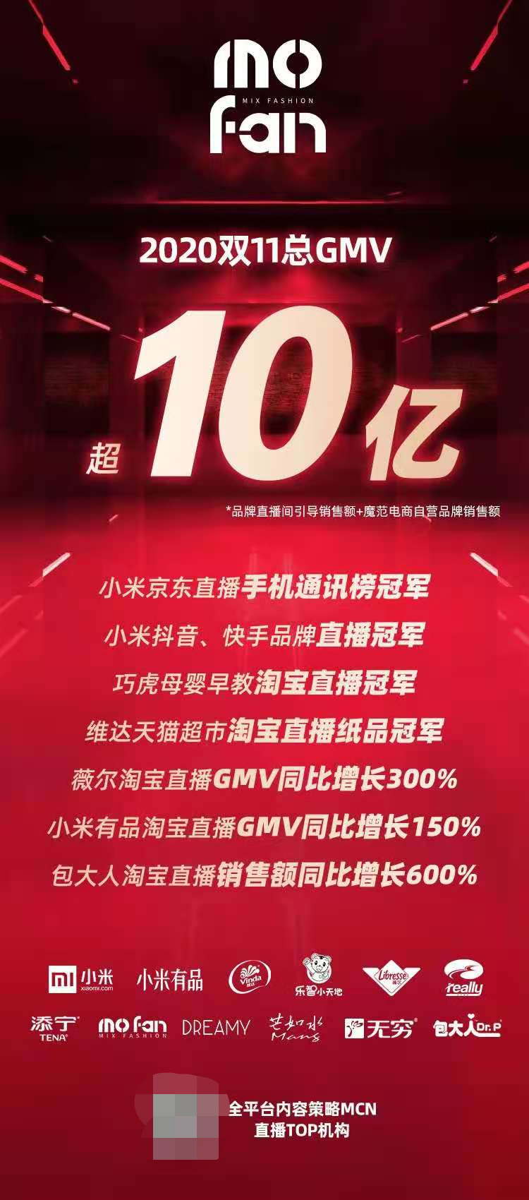 11月12日消息,“两次爆发,双倍快乐”的天猫双11已经在11日24时结束。据魔范官方数据,2020双11总GMV超10亿。此外,直播战绩方面,小米京东直播位于手机通讯榜冠军;小米抖音、快手品牌获直播冠军;巧虎母婴早教获淘宝直播冠军;维达天猫超市获淘宝直播纸品冠军;薇尔淘宝直播GMV同比增长300%;小米有品淘宝直播GMV同比增长150%;包大人淘宝直播销售额同比增长600%。