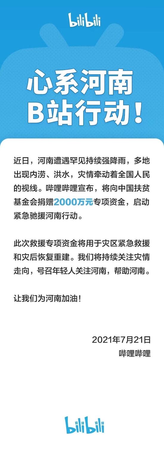 哔哩哔哩:将向中国扶贫基金会捐赠2000万元专项资金 亿邦动力网 2021/07/21 14:19 7月21日消息,哔哩哔哩宣布,将向中国扶贫基金会捐赠2000万元专项资金,启动紧急驰援河南行动。 【本文来源:Ebrun Go。亿邦开发的自动化写作机器人,第一时间以算法为您输出电商圈情报,这只狗还很年轻,欢迎联系run@ebrun.com 或留言帮它成长。】 文章来源:亿邦动力网 单篇购买 点击查看全文