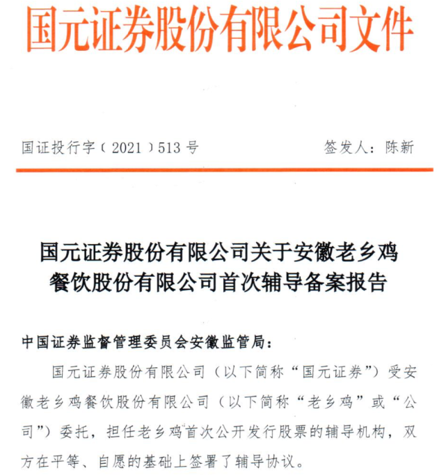 11月4日消息,中式快餐品牌老乡鸡,已与国元证券于今年 9 月签订上市辅导协议,并在安徽证监局备案,拟在深交所主板上市。2003 年 10 月,老乡鸡成立于安徽,采用一体化产业链模式。2018年,老乡鸡完成了加华资本的2亿元首轮融资;2020年,老乡鸡通过发布会宣布加速全国布局,目前在全国拥有超过 1000 家直营店。