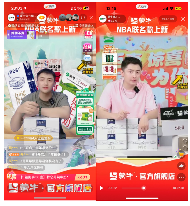 此前,借助快手电商的商家扶持政策和618大促活动,蒙牛快手618真新日活动就创造了总GMV超2850万、品牌自播GMV超780万、直播间累计观看人数超129万的亮眼成绩。活动期间,蒙牛通过“川流计划”实现的GMV达168万,环比增幅达370%。