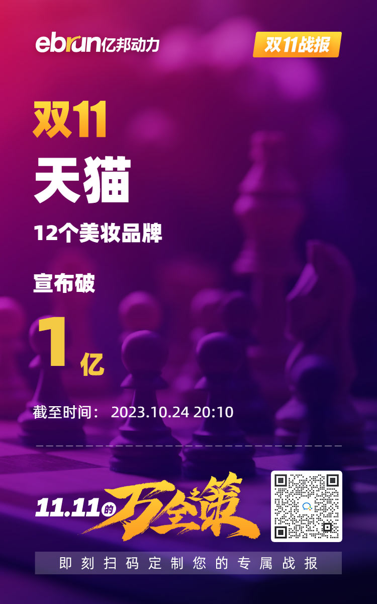 10月27日双11战报消息,截至2023年10月24日20时10分,天猫12个美妆品牌宣布破1亿。其中,超20个国货品牌预售超去年全天;2小时,珀莱雅破十亿大关;4小时,13大国货新锐品牌宣布破亿
