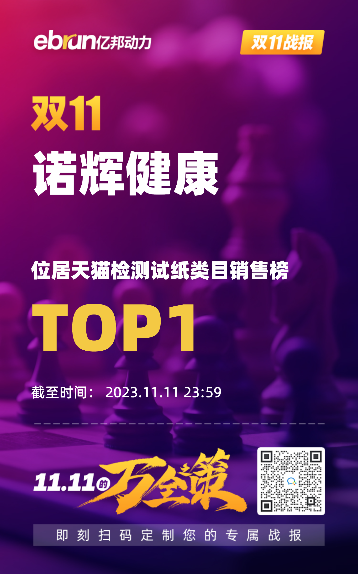 11月12日双11战报消息,截至2023年11月11日23时59分,诺辉健康在天猫双11中拿下了检测试纸类目销售榜TOP1、常卫清单品销售排名榜第一、幽幽管单品销售排名第一的成绩。京东双11中,诺辉健康夺得体外检测类目行业销售排名榜、基因检测类目销售排名榜、常卫清单品销售排名榜和幽幽管单品销售排名榜的多榜第一。营销方面,诺辉健康参与20场直播,还登上交个朋友直播间;通过线上线下广告投放实现超2亿的曝光量。