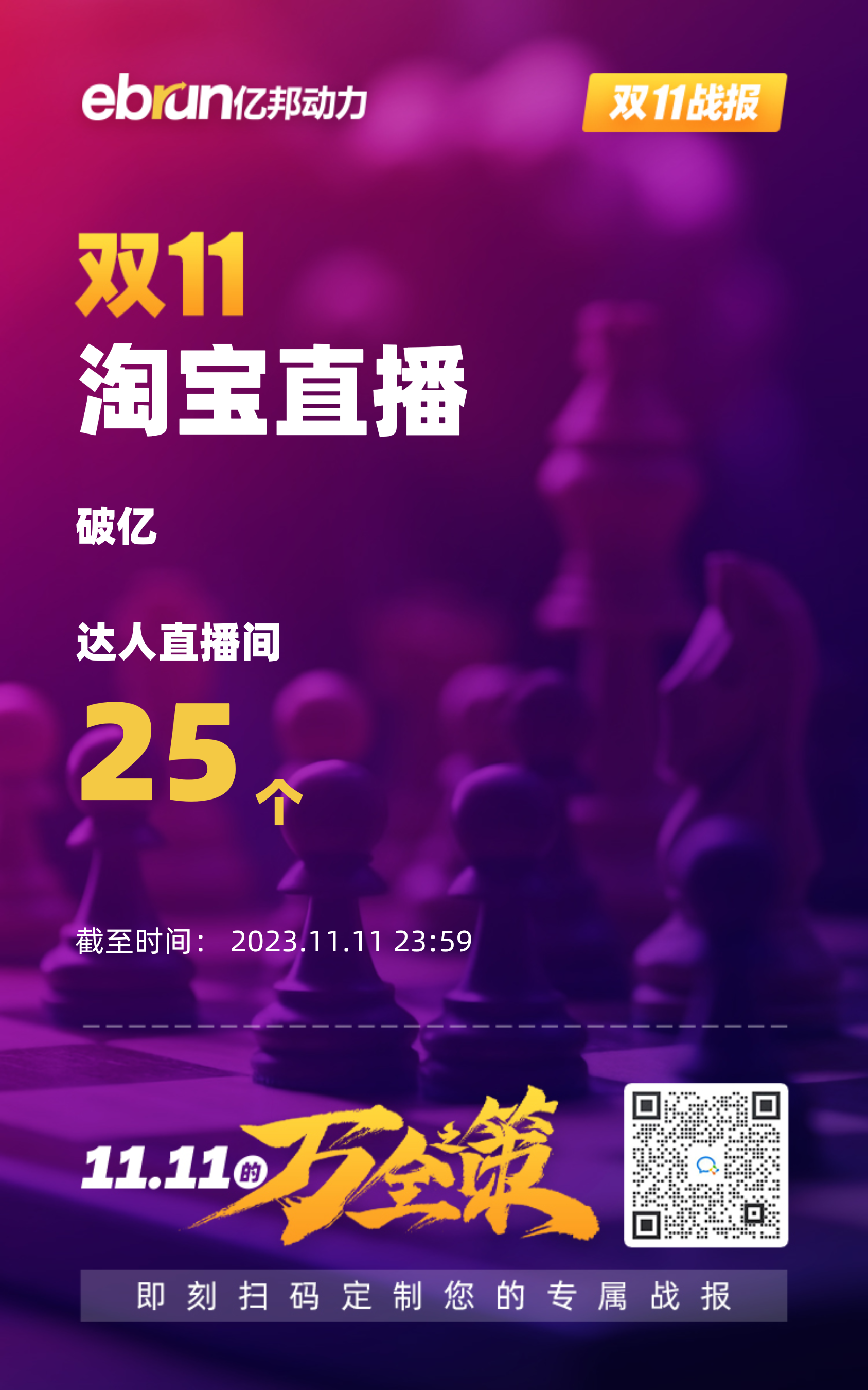 11月13日双11战报消息,截至2023年11月11日23时59分,淘宝直播破亿达人直播间25个;首次破亿达人直播间8个;破千万达人直播间159个。垂类主播开播主播人数同比增长126%,境外达播开播主播人数同比增长86%。