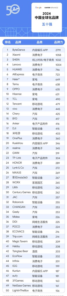 6月21日消息,日前,谷歌携手凯度正式发布“BrandZ 2024中国全球化品牌50强”榜单。数码充电品牌Anker安克位列榜单第16名,在电子配件品类排名第一,此次也是其连续八年登上该榜单。