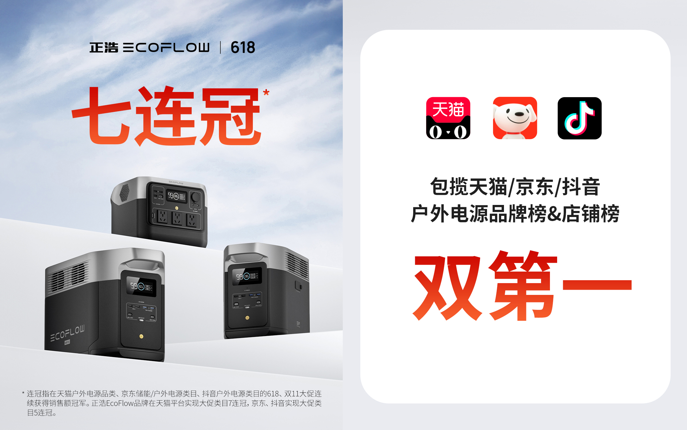 6月21日消息,一年一度618落下帷幕,移动储能与清洁能源品牌正浩EcoFlow公布战报。据悉,正浩EcoFlow在618活动期间包揽了天猫、京东、抖音三大电商平台户外电源品牌榜&店铺榜双第一。这也是正浩EcoFlow在天猫平台实现的618、双11大促类目7连冠,在京东、抖音平台实现的大促类目5连冠。