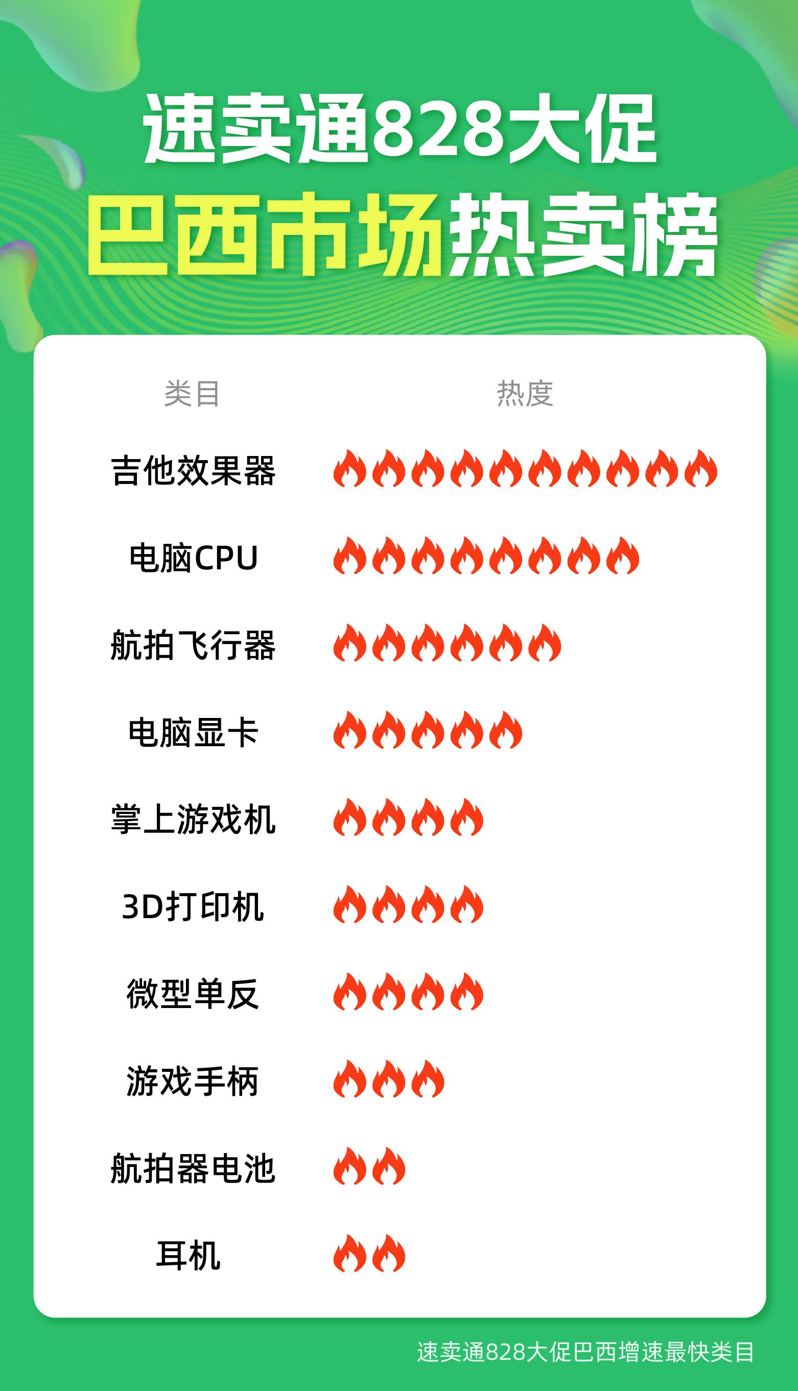 在巴西市场,速卖通巴西海外仓销量同比增长4.5倍;同时,在巴西税改及《黑神话:悟空》爆火的影响下,速卖通巴西数码游戏相关类目实现三位数增长,电脑CPU相比日销增长700%,电脑显卡增长超300%,游戏手柄增长超200%。