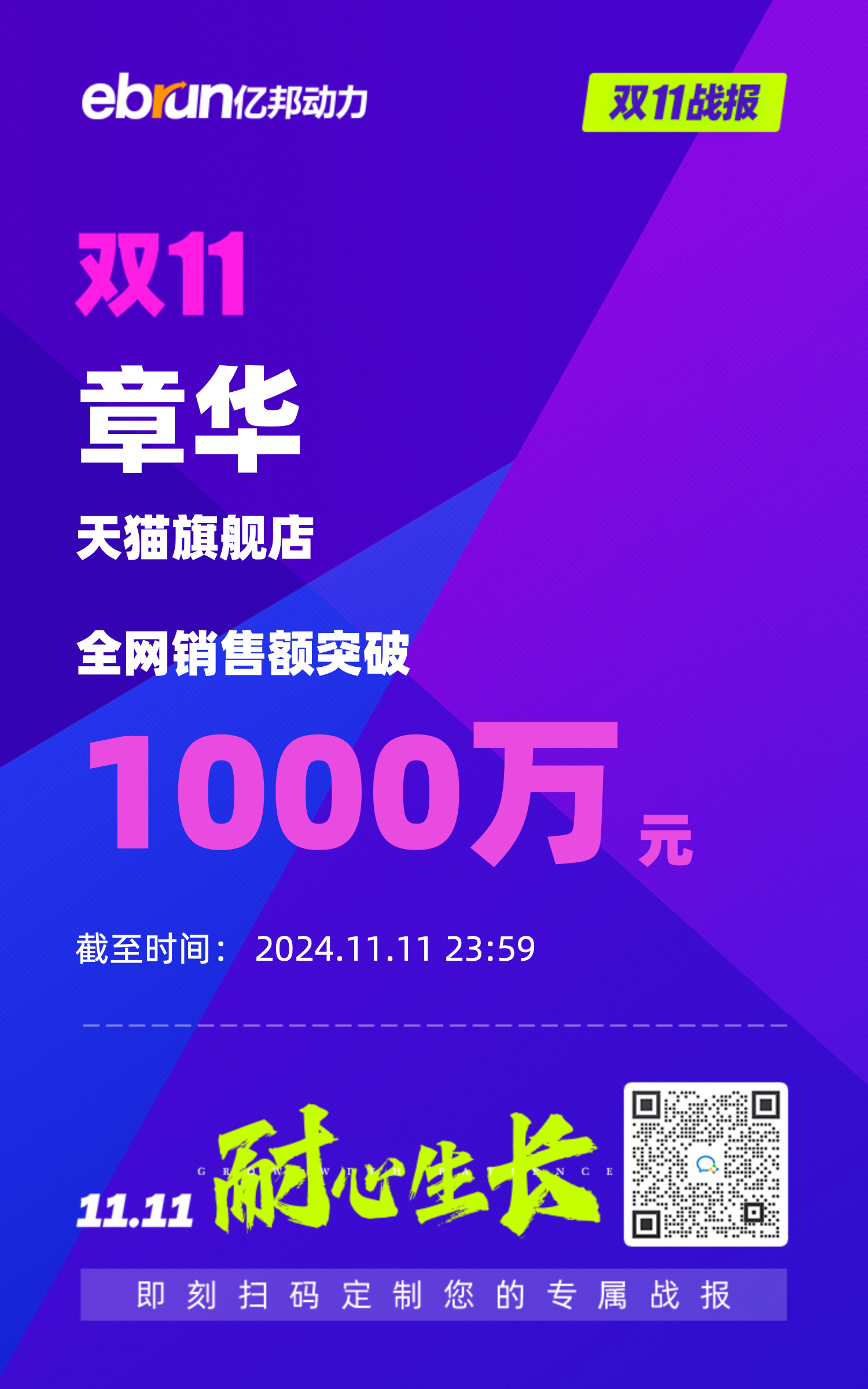 11月11日双11战报消息,章华天猫旗舰店双11全网销售额突破1000万元。其中章华旗舰店在该类目上升19名,排名第五。章华汉草旗舰店首次入榜,获得TOP12,并位列天猫双11“染发抢先购增长品牌榜”第4名。
