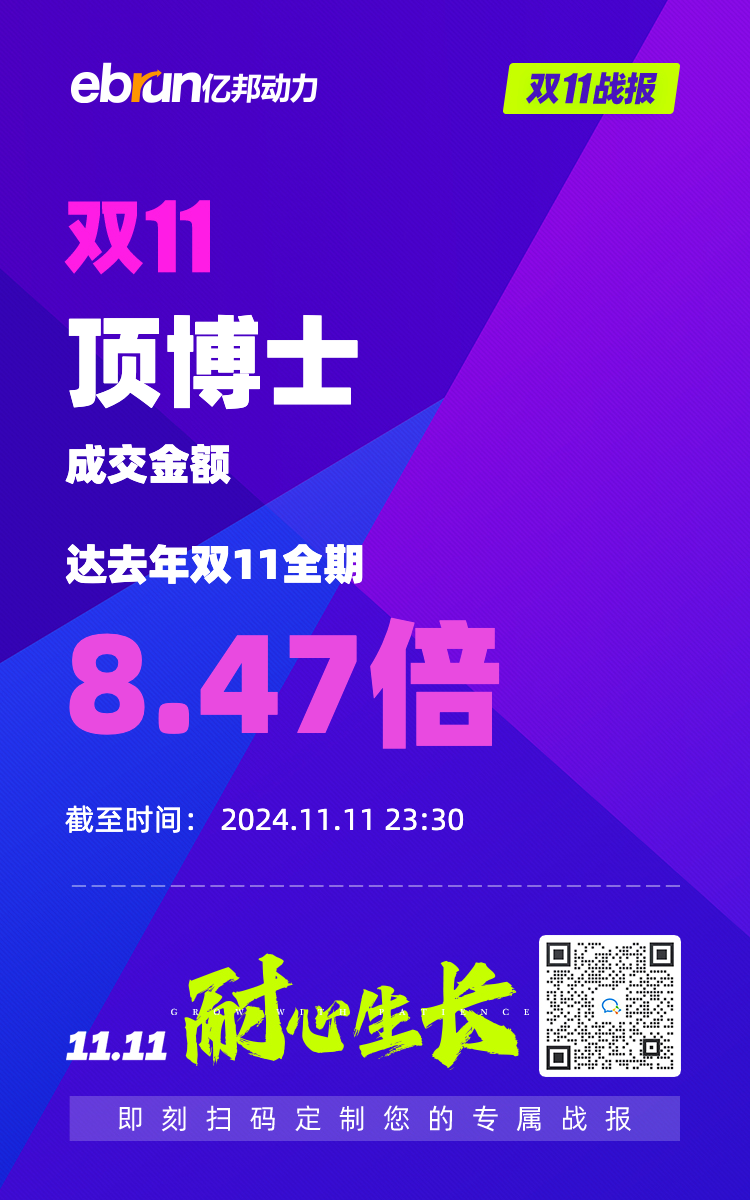 11月12日双11战报消息,顶博士成交金额达去年双11全期8.47倍。