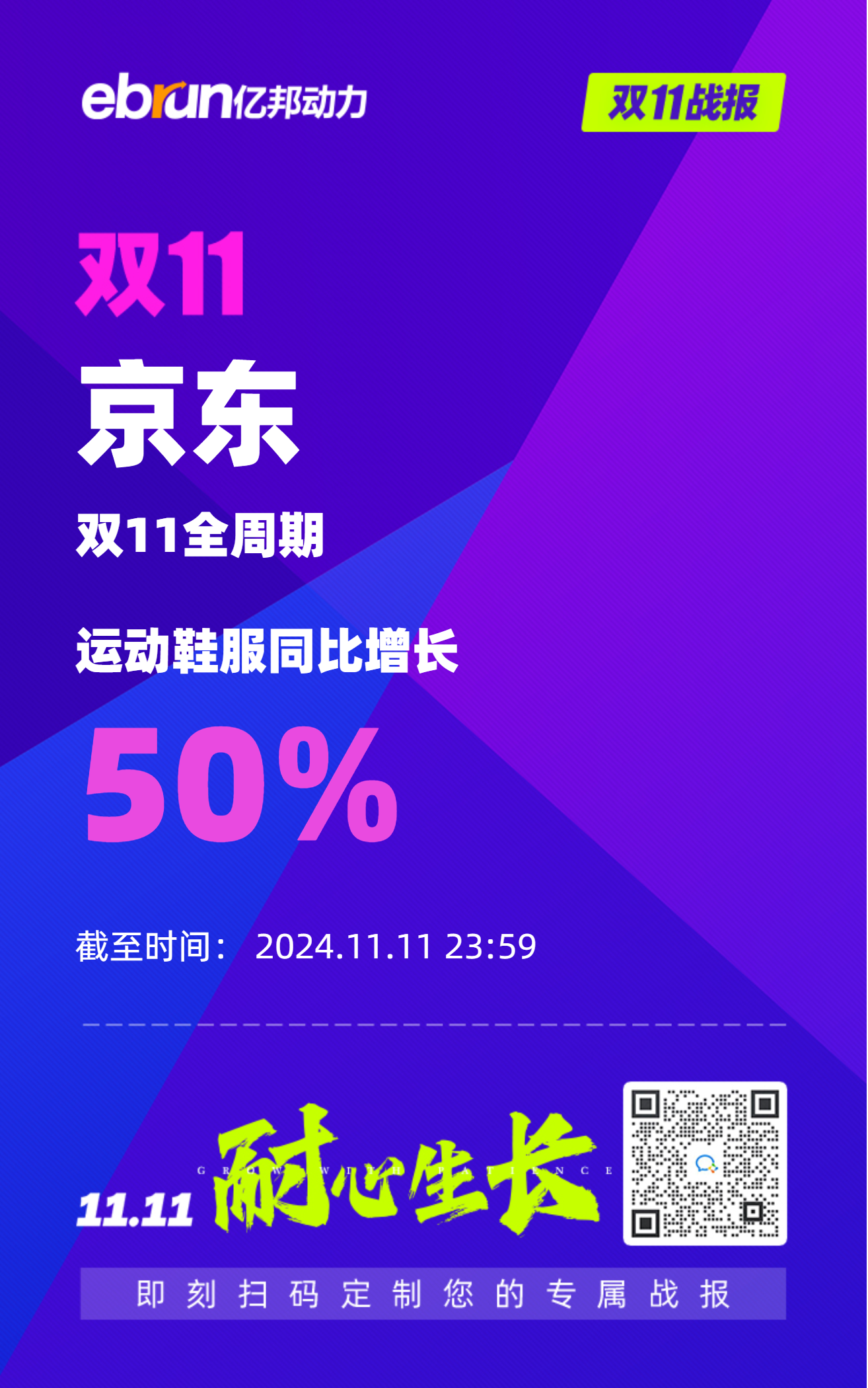 11月12日双11战报消息,截至2024年11月11日23时59分,京东双11全周期运动鞋服同比增长50%。全周期业绩再创新高,热门品类爆发增长。