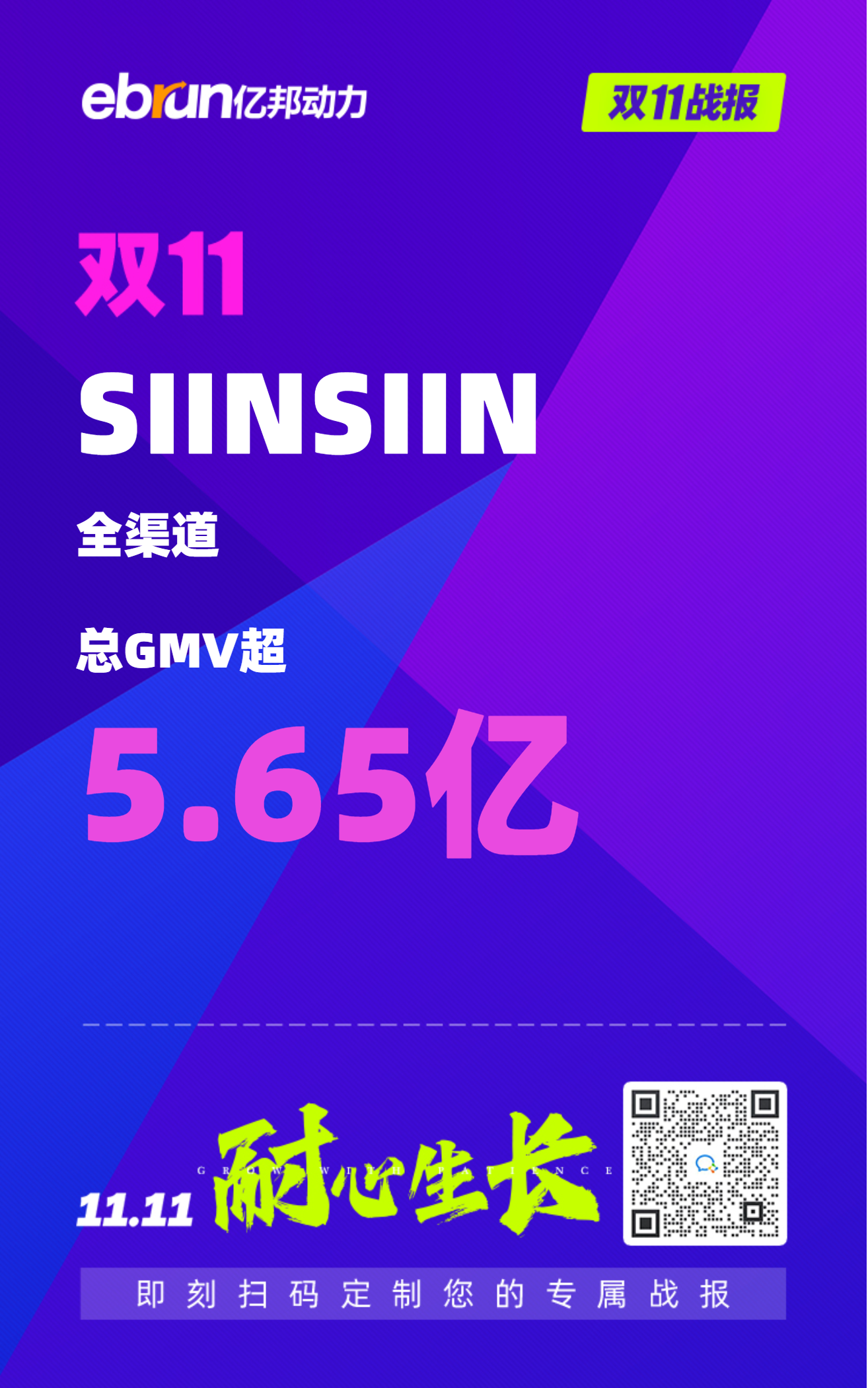 11月13日双11战报消息,SIINSIIN全渠道总GMV超5.65亿。同比23年增长77%,代言人同款轻塑鲨鱼裤总销量破294万。抖音GMV达3.34亿,同比23年增长98%。天猫总GMV达1.19亿,同比23年增长47%。