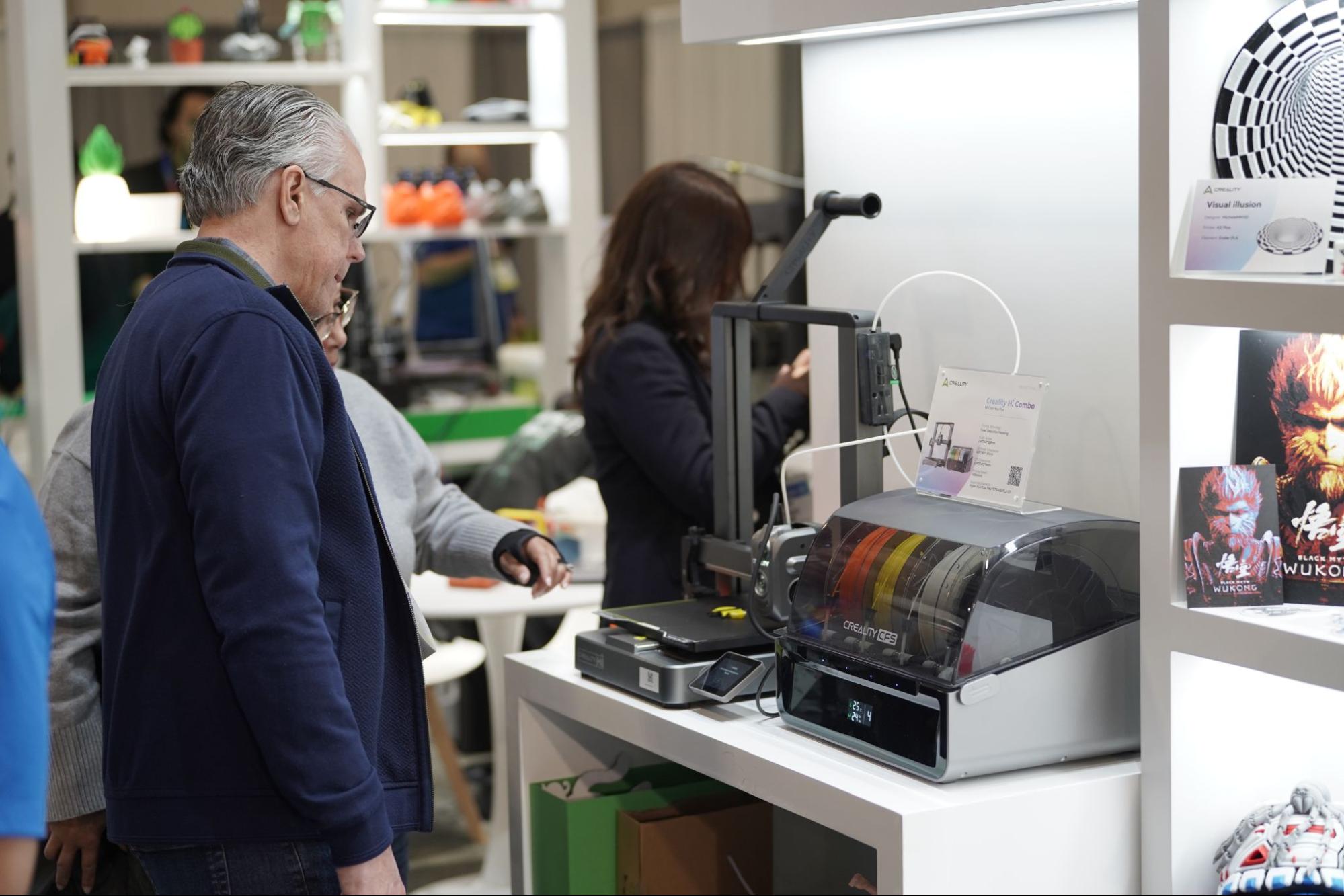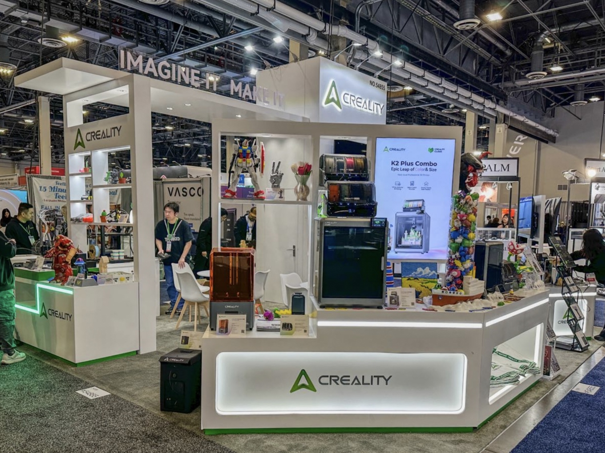 据悉,创想三维展台的一大亮点是K2 Plus Combo。这是一款专为专业和工业级应用设计的大尺寸多色3D打印机,采用全金属机架和五个伺服步进电机,保证打印稳定性和安静运行(48分贝),打印速度高达600mm/s。打印机支持多种材料,包括PLA、TPU、PA和PPS-CF(得益于其可加热至60°C的密闭腔体)。CES现场,参观者可以将现有的3D打印机(不限品牌)以旧换新,最高可享受$500的折扣,用于购买K2 Plus Combo或K2 Plus型号。