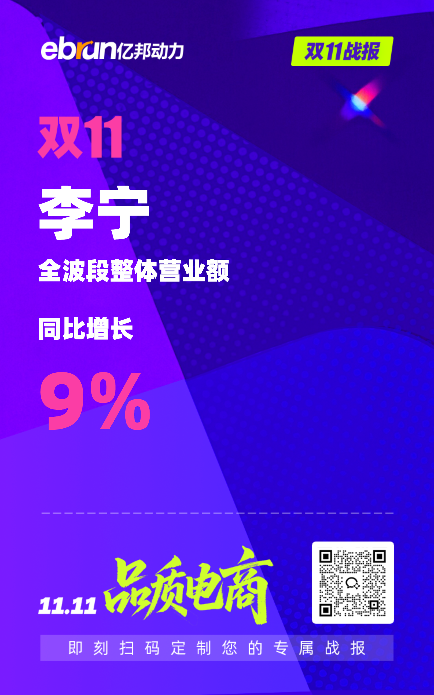 11月15日双11战报消息,2025年双11李宁全波段整体营业额同比增长9%。